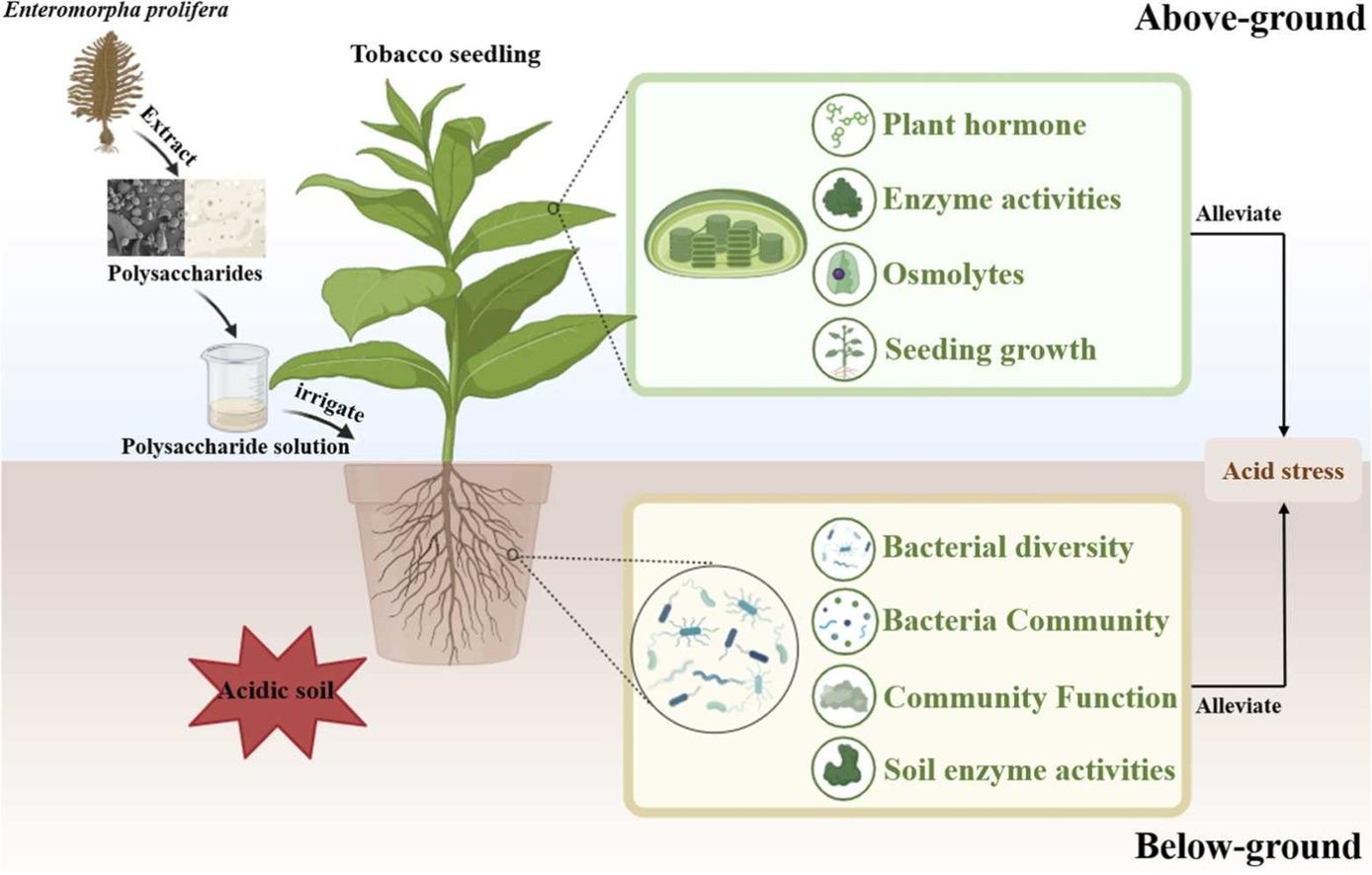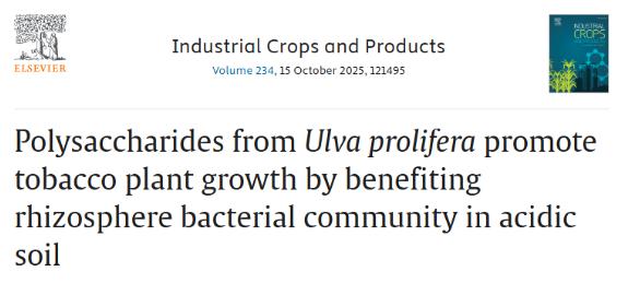 近日,山东省烟草产业技术首席专家杨龙团队在国际知名期刊Industrial Crops and Products(中科院一区,影响因子6.2)在线发表了题为“Polysaccharides from Ulva prolifera promote tobacco plant growth by benefiting rhizosphere bacterial community in acidic soil”的研究论文。
